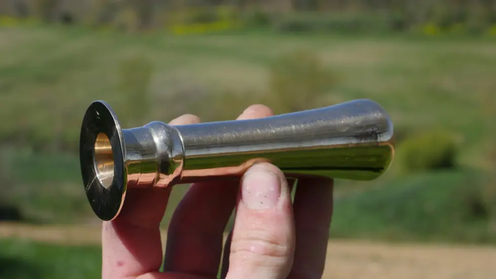 The mouthpiece is an essential element in order to obtain an authentic carnyx sound, as it is at the point of contact between the lips and the mouthpiece that the sound originates. Only two carnyx mouthpieces have been found in the world, one in Tintignac, France and one in Sanzeno, Italy. The two mouthpieces are very similar, with almost the same length and diameter.